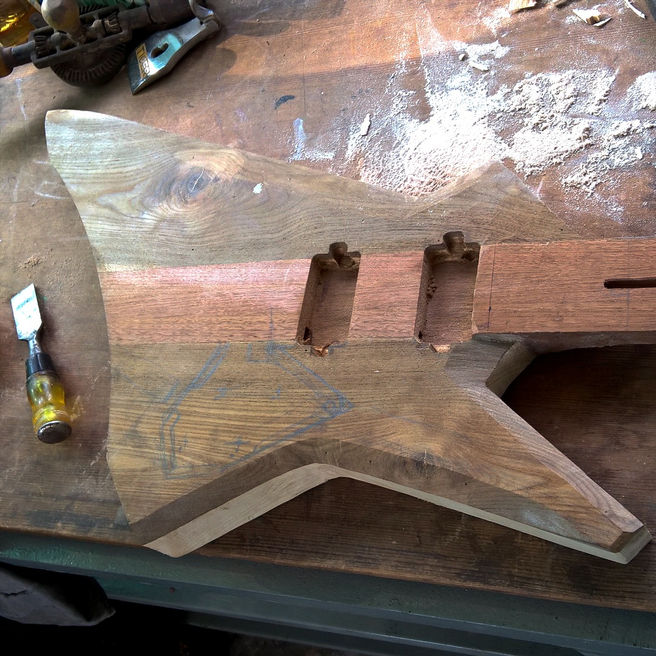 The neck is made of 3-ply teak and extends through the body. This method of construction improves sustain and character of tone.